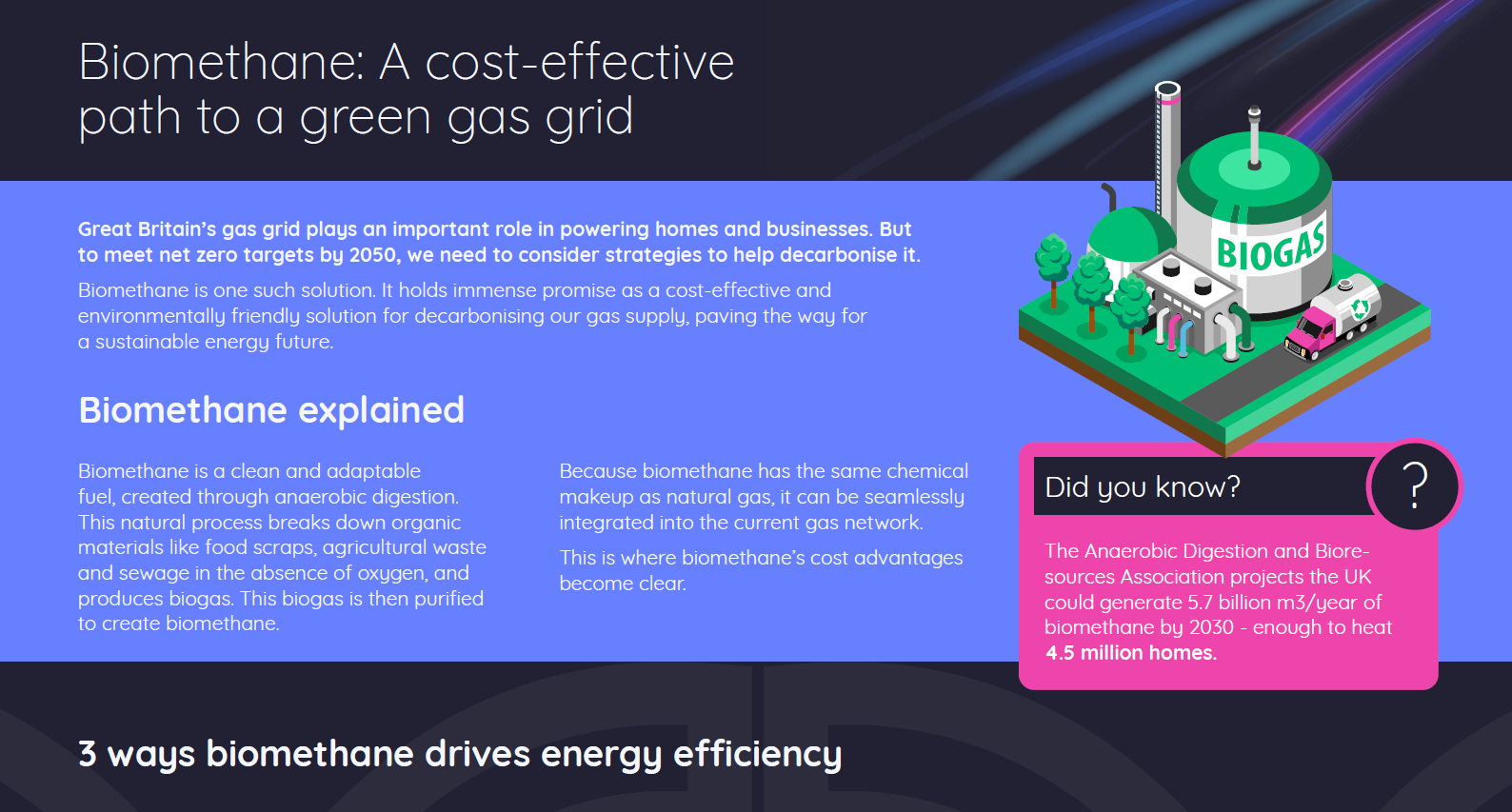 Our helpful infographic explains how biomethane provides a cost-effective solution to decarbonisation.